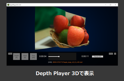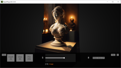 | Depth Player 3Dは深度付きの画像および動画 専用のWindows用メディアプレイヤーです。 通常のjpg等の静止画や2D動画を立体化し視聴することができます※。 デスクトップ用のアプリケーションですがPCの画面以外にも、Meta Quest等のVR ヘッドマウントディスプレイおよび3Dテレビ、3Dプロジェクター等で立体映像を愉しむことができます。 Depth Player 3Dはシェアウエア(有料)です。ダウンロードおよび試用は無料ですが、継続して利用する場合は使用ライセンスの購入が必要です。 ※ 事前に深度画像の作成が必要です。 |