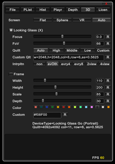 | Auto | 自動的に各デバイス(Looking Glassシリーズ)に適した設定となります |