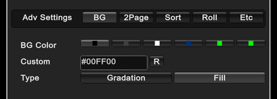 | Color | 色を選択します 右端を選ぶと下のカスタムカラーになります。 同じボタンをもう一度押すと光沢のON/OFFができます |