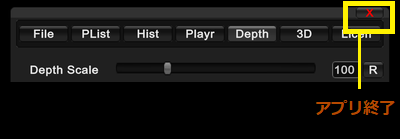 | アプリケーション終了 | ESC | Depth Player LKGを終了します ファイル画面の右上にも終了ボタンがあります |