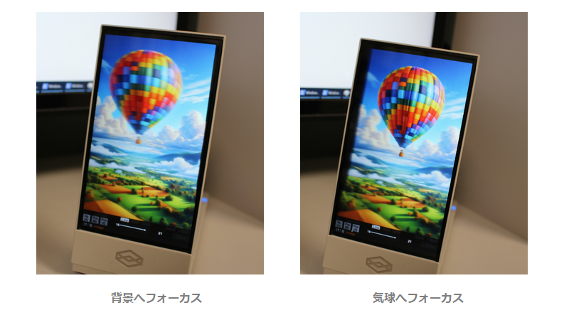 | ■Looking Glassなしで利用する Looking Glass Bridgeが起動してない状態(または、インストールされていない)でDepth Player LKGを起動するとメインモニターで表示されます。 Looking Glassを持っていなくてもPCモニターで利用することができます。フルHDや4Kなど16:9のモニターで使ってください。またフルスクリーン専用となります。 ![]() フレームボックスはLooking Glass GO用(縦型ディスプレイ)に調整されていますので3D設定のFrameからWidthを調整するか、フレームボックスをOFFにしてください。 ![]() Looking Glassは仕組み上 小さい文字の視認性が悪いので使い方に慣れるまでPCモニターで使うことをお勧めします。 ![]() Looking Glassでの文字の視認は厳しい ![]() PCの画面なら小さい文字までクッキリ |