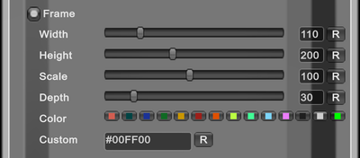 左ドラッグでデプススケールを調整します 調整中に右クリックで設定値にリセットします Aキーを押しながらホイールでもデプススケールを調整できます 右ドラッグでスクリーンスケールを調整します |