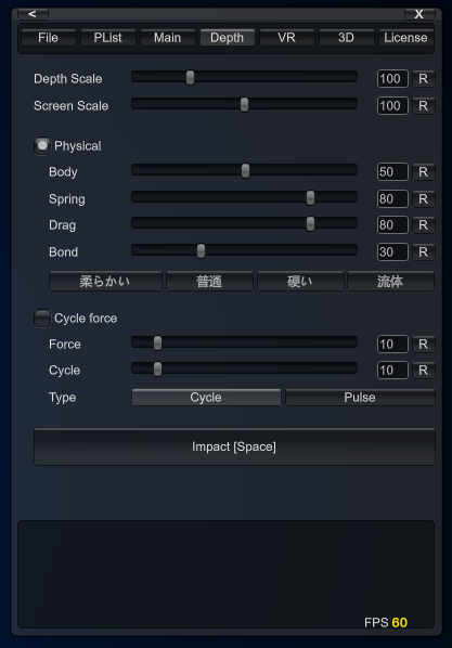 プリセットの値はDepthPlayer3D.iniをメモ帳で開いて[Depth.Preset.0]等を編集することで 変更できます。