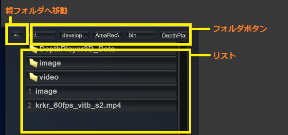 フォルダの場合は フォルダに含まれる画像ファイルや動画ファイルがリストへ展開されます。