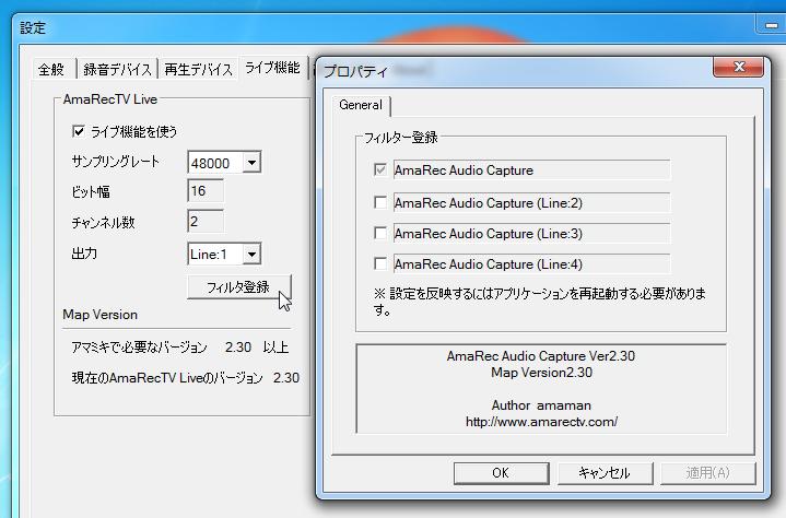 (4) アマレココを起動し設定のオーディオプラグインで「AmaRec Audio Capture」を選択する