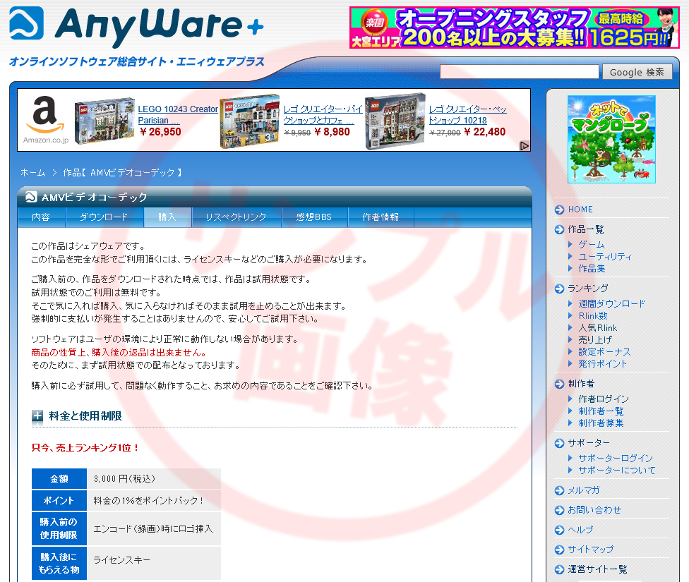 | ステップ3 | AnyWare+のAMVビデオコーデックのページが表示されますので、